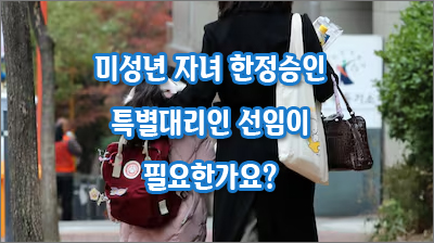 ¿¹¸¦ µé¾î ¹è¿ìÀÚ´ÔÀÌ ÇÑÁ¤½ÂÀÎ ¹Ì¼º³â ¾ÆÀ̵éÀÌ »ó¼ÓÆ÷±â¸¦ ÇÏ´Â °æ¿ìÀÔ´Ï´Ù. ÀÌ °æ¿ì Ä£±ÇÀÚÀÇ ´ë¸®±ÇÀÌ Á¦ÇѵǴ ÀÌÇØ»ó¹ÝÇàÀ§¿¡ ÇØ´çµÇ¹Ç·Î °¡Á¤¹ý¿ø¿¡ Ưº°´ë¸®ÀÎ ¼±ÀÓÀ» û±¸Çϵµ·Ï ÇÏ¿© Ưº°´ë¸®ÀÎÀÌ Ä£±ÇÀÚ¿Í ¹ý·üÇàÀ§¸¦ Çϵµ·Ï Çϰí ÀÖ½À´Ï´Ù.